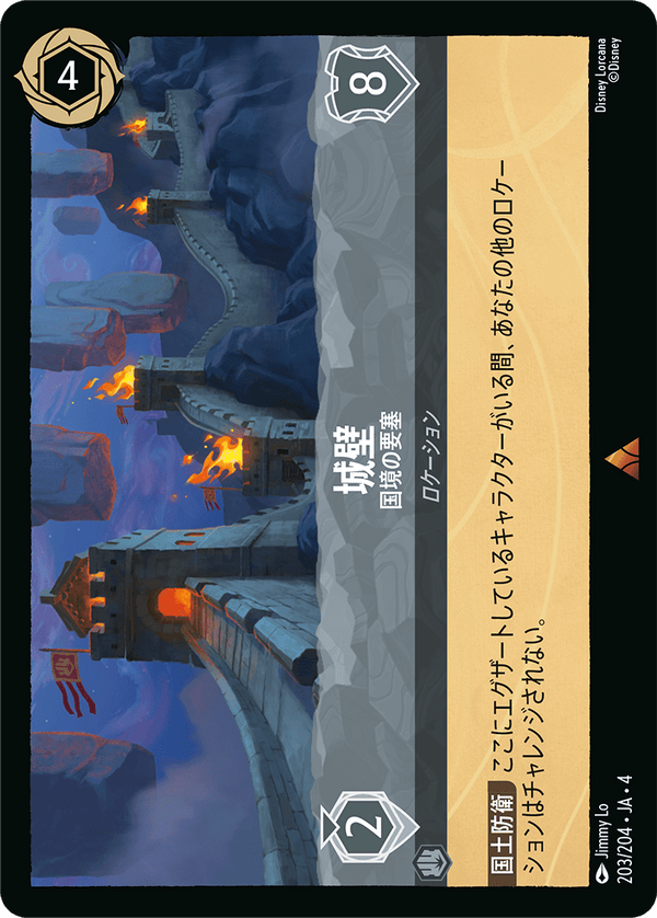 国土防衛 ここにエグザートしているキャラクターがいる間、あなたの他のロケーションはチャレンジされない。