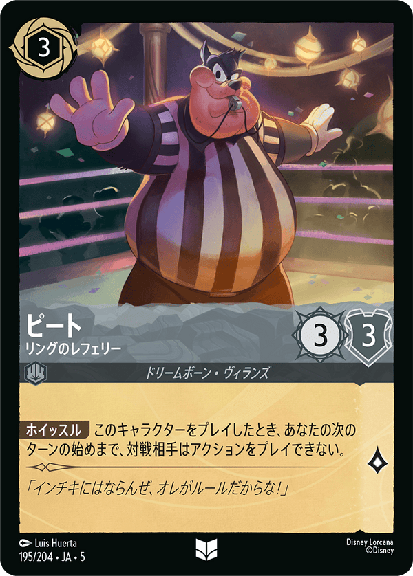 ホイッスル このキャラクターをプレイしたとき、あなたの次のターンの始めまで、対戦相手はアクションをプレイできない。