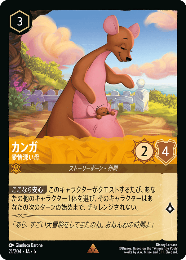 ここなら安心 このキャラクターがクエストするたび、あなたの他のキャラクター1体を選び、そのキャラクターはあなたの次のターンの始めまで、チャレンジされない。